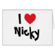 "I Love Nicky" ontwerp met een funky hart en lettertype. Als je de naam niet vindt, pas je dit ontwerp aan om je eigen cadeau te creëer.