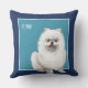 U kunt de kussen personaliseren door de naam op de voorzijde van de kussen te bewerken, klik gewoon op de knop Personaliseren. De achterkant heeft een schattige witte Pommeren op blauw vierkant en aangepaste tekst.