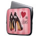 Patent zwarte stiletto shoe design, met roze gestreept achtergrond en grappig citaat.