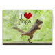 Een leuke foto van een schattige eekhoorn die een yoga-postel doet met de tekst "Ik hoor Yoga" boven hem. De eekhoorn ligt op de houten rails van een dek buiten, in een yoghaanse positie met zijn poten voor hem, een been achter hem in de lucht, en zijn staart recht uit. Deze eekhoorn houdt er uiteraard van zijn yoga-oefeningen buiten te doen, omgeven door natuur, met bomen op de achtergrond. Het lijkt erop dat hij zijn versie van de zonsondergang doet en misschien op het punt staat naar de neerwaartse hondenpositie te gaan. Je kunt dit schattige eekhoorntje afbeelding laten afdrukken op veel verschillende producten die gemakkelijk kunnen worden aangepast. Als je van yoga houdt, en je denkt dat eekhoorns schattig zijn, dan is dit de foto voor je!
