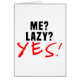 Ik? Lazy? Ja! tekst van zwarte, witte en rode kleur. Grappig t-shirts, prints en geschenken voor plezier en goede stemming. Verticale of portretgerichte producten en souvenirs.