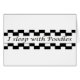 Een zwarte en witte vinkje en 'Ik slaap met Poodles'.