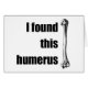 Een afbeelding van een baarmoederbot. Tekst: "Ik heb deze humerus gevonden"