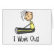 Stick figuur t-shirts, canvas tassen, kaarten, stickers, mokken, magneten, sweatshirts, hoodies en nog veel meer met een thema voor lichaamsbeweging en fitness dat u kunt aanpassen met een naam of andere tekst. De tekst luidt "Ik werk uit!".