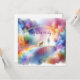 Waterverf illustratie Ik zie je bij de Regenboogbrug. Een grillige, droomachtige scène met een kleurrijke, etherische Regenboogbrug die zich uitstrekt over een fantastisch landschap vol zachte, kolkende wolken in levendige tinten van blauw, roze en geel. De sfeer is sereen en magisch, roept een gevoel van verwondering en rust op, omringd door glinsterende sterren en lichtpaden die het betoverende gevoel van de scène versterken.