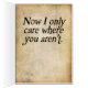 Voorkant: Het kan me niet meer schelen waar je bent. Binnen: Nu kan het me alleen schelen waar je niet bent. Een kaart voor iemand die de belangrijkste persoon ter wereld is.