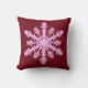 Een delicaat, lacy sneeuwvlokpatroon op een stevige achtergrond met een gestreepte, Ikat geweven textuur - bleke roze sneeuwvlok op een diep bordeauxwijn / kastanjebruin achtergrond vierkant kussen