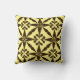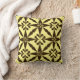 Digitale reproductie van een gestileerd, vierpuntensterpatroon werpen kussen met een gestreepte, Ikat geweven textuur - Chocoladebruin patroon op een zachte, gele achtergrond van boter