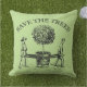 afbeelding met twee mannen met een jonge boom in een pot + een traditionele letters (niet aanpasbaar): "Sparen de Bomen". Perfecte kussen in de openlucht voor de dag van de aarde. kussen. U kunt achtergrondkleur, grootte en positie van het afbeelding gemakkelijk veranderen door de aanpassingsknoop te klikken.