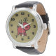Een horloge met een rode kerstrendierafbeelding. Festief en leuk. De achtergrond is een digitaal afbeelding van bruin kraftpapier, niet echt kraftpapier.