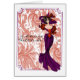Dit leuke ontwerp is een klein , geïnspireerd design dat het vieren dat alles draait om de houding. Er is een paarse grens met een filigreeafwerking met een rood vocht-vochtpatroon binnenin. In het midden staat een afbeelding van een dame in een stijljurk van 1920 of 1930 met een groot rood pet en paarse en rode veren. Fun flair met een Victoriaans aanraking.