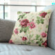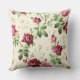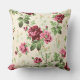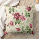 Dit is een kussen met een Victoriaans afbeelding van roze rozen op een neutrale basis. Het patroon is van een oud behang gevonden in het publieke domein.