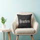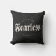 Christelijke kussen met lichtgrijs gotisch script op zwarte achtergrond. Maak een profetische verklaring dat je onbevreesd bent in God. Bijbelverse: In God ben ik vergeefs 2 Tim 1:7