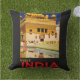 Visit India is een vintage poster. met een goudkleurig Indiaas gebouw en mensen rond een reflecterend zwembad. India State Railways Bureau door Fred Taylor, 1930 - 1940.