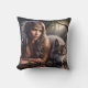 Indiaanse vrouw zit 's nachts bij wolf kussen