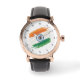 Wear your heritage and patriotism with pride with this striking Hindi Sanskrit Numerals Watch featuring the Indian Tricolour Flag prominently in the center of the dial. This unique timepiece beautifully blends traditional Devanagari (Hindi/Sanskrit) numerals (१, २, ३, etc.) with the vibrant and iconic colors of the Indian National Flag, celebrating cultural identity and national spirit. Encased in a sleek finish and complemented by a comfortable leather strap, this watch is more than just a time-teller; it's a statement of pride. It's perfectly suited for those seeking a "Patriotic Indian watch", a "Hindi numeral flag dial", or a meaningful "gift for NRIs" and Indian diaspora, designed to attract significant traffic from culturally engaged audiences.