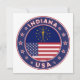 Badge van Indiana met vlag van Indiana en vlag van de VS kleuren, afgeronde vorm. Embleem van Indiana. Het zegel van Indiana. COLLECTIE van de Verenigde Staten. Indianapolis, Fort Wayne, Evansville, South Bend, Carmel, Fishers, Bloomington, Hammond, Gary, Lafayette