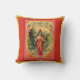 Indiase godin Pillow in verschillende stijlen/maten/weefsels. Zeer in tinten van rood, koraal, groen en goud. De achterkant van de kussen is stevig goud in kleur om de grens van het afbeelding aan de voorkant aan te passen.