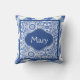 Monogram of tekstkussen. Prachtige indigoblauwe en witte patronen, geplakt aan de buitenrand, en bloem aan de binnenkant, met een groot miljoen indigo blauw in het midden. De tekst is klaar voor u om op beide zijden van deze mooie sleepkussen uit te geven. Kies uit vierkante kussens van 20 x 20 inch of een rechthoek van 13 x 21 inch met bolstijl. Onze kussens zijn gemaakt van 100% A geweven katoen, of duurzaam polyester, en zien er geweldig uit in elke kamer, van de slaapkamer tot de woonkamer, de huiskamer of de veranda aan de voorzijde! De aanschaf van kussen op maat, geproduceerd door alleenstaande moeders die duurzaam in dienst zijn in de VS, draagt bij aan het doorbreken van de armoedecyclus voor alleenstaande moeders en hun kinderen, terwijl het er goed uitziet in uw huis! Design van Scarebaby Design, ondersteund door de Zazzle-garantie.