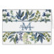 Een grens van indigo blauwe en groene bladeren en bladeren op de bovenkant en de bodem van de voorzijde van deze gepersonaliseerde notitiekaart maakt een aardig lijst voor uw douanetekst in aanpassing blauw op het centrum. De binnenkant van deze kaart is leeg voor je eigen bericht. Geweldig voor vele gelegenheden, of gewoon om contact te houden, en gepersonaliseerd alleen voor jou!