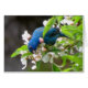 Indigo Bunting-vogel voedt zich met lenteskrabappelbloesems. Wilde florale afbeelding gevangen in New Hampshire.