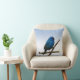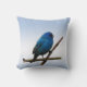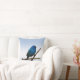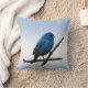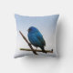 Deze decoratieve goot kussen kenmerkt het spectaculaire mannelijke IndigoBunting die op een tak doordringt. Deze kleine vogel wordt niet vaak gezien. Hij is verlegen en neigt mensen te vermijden. Zijn habitat is landbouwgrond, borstelgebieden en open bosgebieden. Hij heeft ongelofelijk briljante strijkende blauwe veren en een heel mooi lied. Het vrouw is schattig, maar een saaie bruine kleur. Hier staat hij tegenover een mooie pastelblauwe hemel. Het afbeelding wordt op de achterkant herhaald.