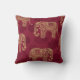 Mooie bordeauxrode kussen met gouden Indische olifanten en een paisley motief.