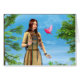 3D digitale render van een mooie indiaanse vrouw met een roze vogel in een groen bos
