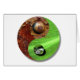 Yin en Yang, Industry tegen natuur. Rusty metal tegen de schoonheid van een kristalheldere druppel water op een blad. Het leven zit vol tegenstellingen. Dit ontwerp houdt alles in perspectief.