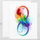 Kunstmatig getekend ineiniteitssymbool met prachtige regenboogveren op witte achtergrond. Tattoo stijl.
