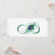 Het symbool van oneindig met een heldere, groene, artistieke pauw-veer op een witte achtergrond. Tattoo stijl.