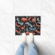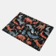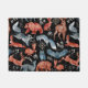Geïllustreerde bosdieren in rood en blauw, waaronder vossen, beren, uilen en herten, zijn versierd met ingewikkelde patronen op een zwarte achtergrond.