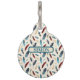 Zuidwest, Native American Style pet ID label beschikt over turquoise blauw, marineblauw, roest en tan veren tegen een witte textuur achtergrond. Ze zijn verkrijgbaar in 2 verschillende maten en je personaliseert het op de voorkant met de naam van je huisdier met de eenvoudig te gebruiken sjabloon. Aan de andere kant voeg je toe wie je moet bellen als het huisdier verdwaalt en de telefoon #.
