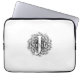 Aangepaste initiaal en naam laptop sleeves. Zwart-wit versie. Bewerk tekst om de letter en naam van het initiaal te personaliseren.