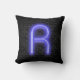 Initiaal R in gloeiende markttent paarse neonverlichting op de muur van de stadskersteen. Neem contact met me op voor wijziging van de initiaal brief.