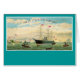 Vintage-reisillustratie die de Inman Steamship Company promoot, die een vroege sturing laat zien van een overgangsontwerp met zeilen die samen met rokestacks lopen.