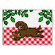 Cute en grappige Chocolate Labrador Retriever Dog Cartoon gemaakt door Naomi Ochiai uit Japan. Geweldige cadeautjes voor hondenliefhebbers die van Chocolate Labradors houden! U kunt tekst toevoegen. Cute picnic design met een rood gingham-patroon.