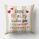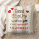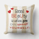 Eenvoudig en leuk inspirerend berichten op onze 20-inch x20-inch kussen. Het bericht luidt "Echte BEaUty is wanneer u zich kunt waarderen." Verkrijgbaar in verschillende formaten en configuraties!