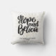 Een mooie kussen met de woorden Hope en Believe aan de voorkant met je aangepaste tekst. Voeg een familienaam, datum, enz. toe. De achterzijde kenmerkt uw douanefoto. Maakt een geweldige vakantie, verjaardag of een Vaderdag cadeau van moeder en moeder.