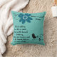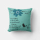 Inspirerend Quote met Vogelworp kussens. Aqua blauwgroen achtergrondkleur met aqua floral accent, met een inspirerend quote over het vertrouwen in jezelf en je eigen vleugels. Een vogel die op een boom zit, is nooit bang dat de tak breekt, omdat haar vertrouwen niet in de tak is, maar in haar eigen vleugels. Geloof altijd in jezelf" Kleine vogel zittend op een wervelende tak.
