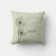 Inspirerende grafische afbeelding van een paardenbloem "Wens" op een stoffige groene kussen.
