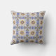 Decorative cushion with intricate blue and yellow geometric patterns on both sides, featuring symmetrical designs creating a harmonious, stylish tone.