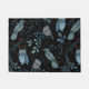 Intricate pattern of blue birds and an owl, adorned with floral and paisley designs on a black background, conveying an elegant and whimsical tone.