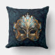 A beautifully ornate mask adorned with intricate blue-teal and damask patterns, featuring delicate scrollwork and gemstone-like accents. The design exudes an air of mystery and elegance, reminiscent of a Venetian masquerade.