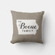 Moderne boerderij gooit kussen gepersonaliseerd met je familienaam op je staatskaart. Faux burlap canvas texture background (let er op dat kussentjes niet van materiaal zijn gemaakt om de schoot te leggen). Klik de Customize knoop van het om uw eigen tekst toe te voegen en uit al onze kussenstijlen te selecteren om uw eigen unieke één van een soort ontwerp te creëer!
