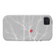 Eenvoudig mooi origineel ontwerp iPhone 4/4S hoesje. Elegant grijze achtergrond met sneeuwwintertakken, rode bessen en één rode vogel.