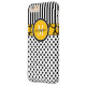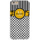 Dit gepersonaliseerde zwart-witte Hoesje-Malt aangepaste iPhone 6 Plus hoesje heeft een leuke polka stip, een gestript achtergrondpatroon met een gouden mosterdgele en zwarte girafdrukland en cirkel om jouw naam, initialen, monogram of andere tekst toe te voegen aan. Dit moderne en trendy nieuwe hoesje maakt een chic statement voor de hippe fashionista! Als je hulp nodig hebt, stuur dan een e-mail naar niteowlstudio@gmail.com.