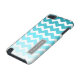 iPod Touch 5g-hoesje in elegant en modern helder blauwgroen turquoise blauw, grijs en wit plezier en retro chevrons zigzags streept een patroon . Pas dit hoesje met jouw naam of andere teksten voor een echt uniek telefoongeval aan. Neem contact met ons op voor een aangepaste kleur.
