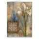 © Silvia Vassileva / Wilde Apple.  Het afbeelding show een witte iris, en een decoratieve vierkant tegel aan de zijkant. De tegel aan de linkerkant heeft een bruine rand.