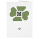 Deze St. Patrick's Day-kaart heeft een groene en gouden klaver met vier bladeren aan de voorkant, samen met de kleuren van de Ierse vlag. Aan de binnenkant is een Ierse zegen samen met de Gaelic St. Patrick's Day zegeningen, "Éire go Brách" en "Lá Chéile Pádraig Sona Duit" het is de perfecte plek voor het verzenden van al uw St. Patty's Day vakantie groeten.